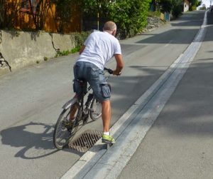 1993 wurde hier ein Fahrradlift errichtet, der einzige der Welt, wie ich erfahre. Er befördert die Radfahrer ca. 250 m über eine Steigung von 16 – 18% nach oben.
