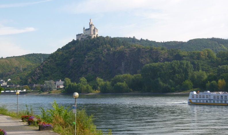 Zwischen Bingen und Koblenz sehen wir auf der anderen Rheinseite die Marksburg.