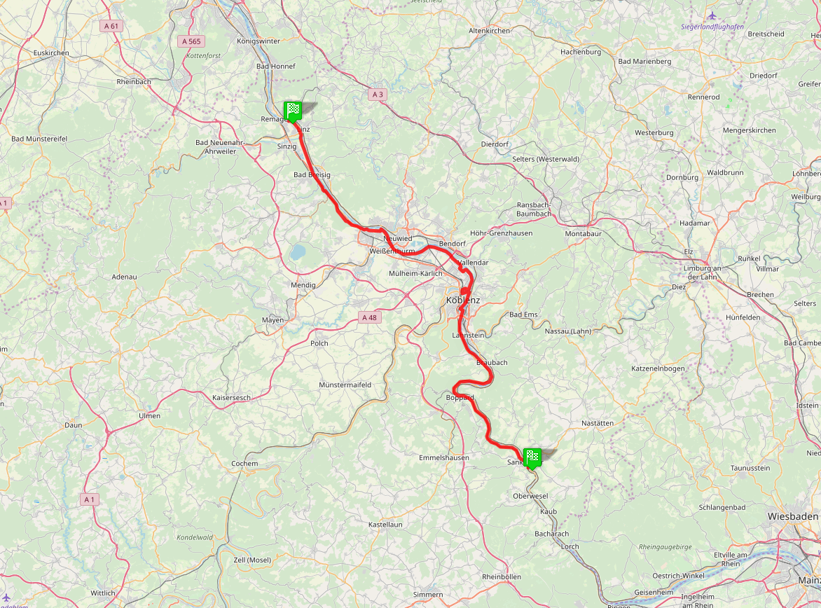 Es geht wieder direkt am Rhein entlang und immer noch ist das Rheintal sehr schmal.