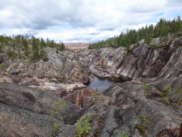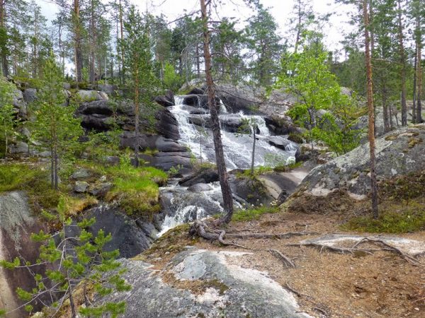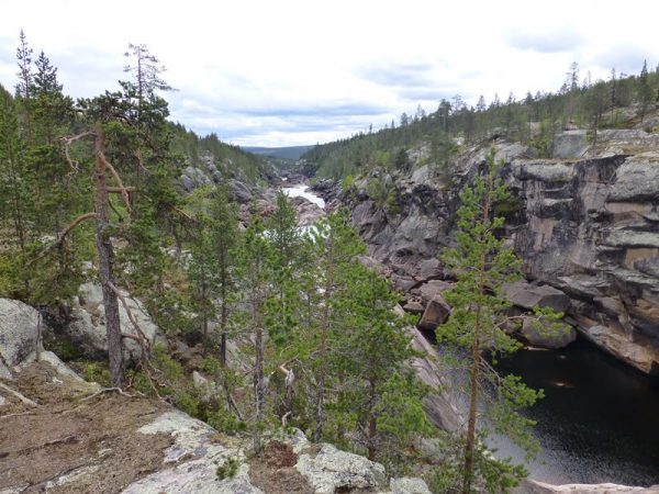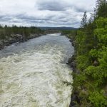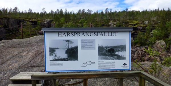 Nach 60 Kilometer oben angekommen, schaue ich mir die Harspångsfälle an. Zurzeit ist hier nicht so viel Wasser, aber während der Schneeschmelze fließt in einer Sekunde 1.000 m³ Wasser 75 m hinunter.
