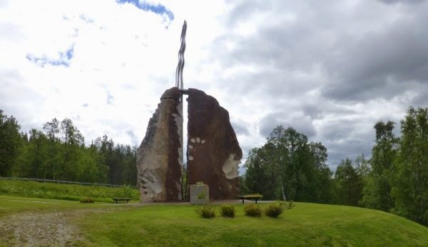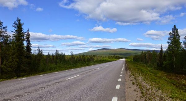 Es fährt sich gut auf der E45, kaum Verkehr und mir fällt auf, dass die Fichten und Tannen immer kleiner werden, je weiter ich nach Norden komme. Sonst gibt es nichts Besonderes. Man könnte meinen, das Lappland ist eben, aber es sind doch viele Berge und sogar noch mit Schneeresten.